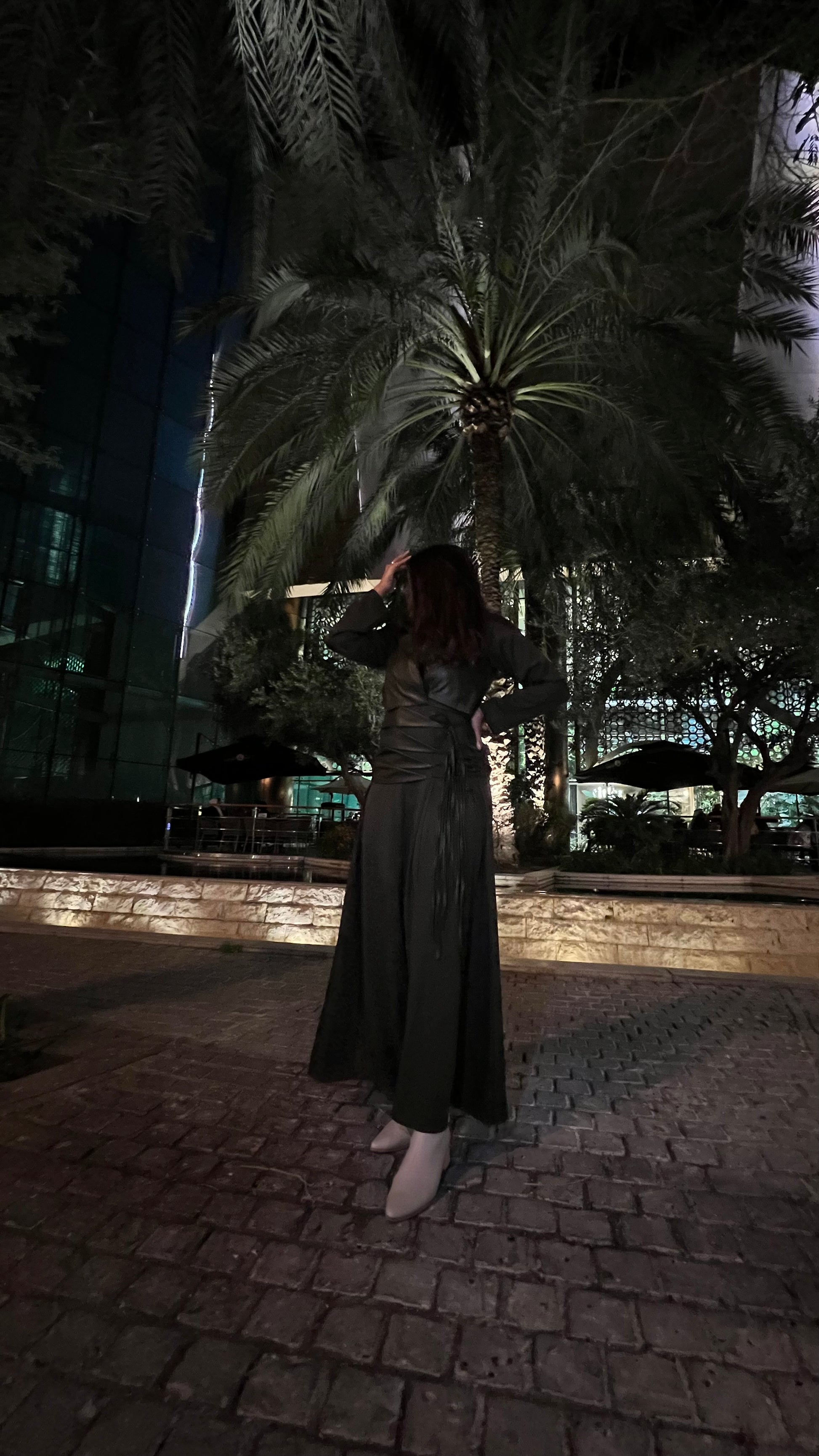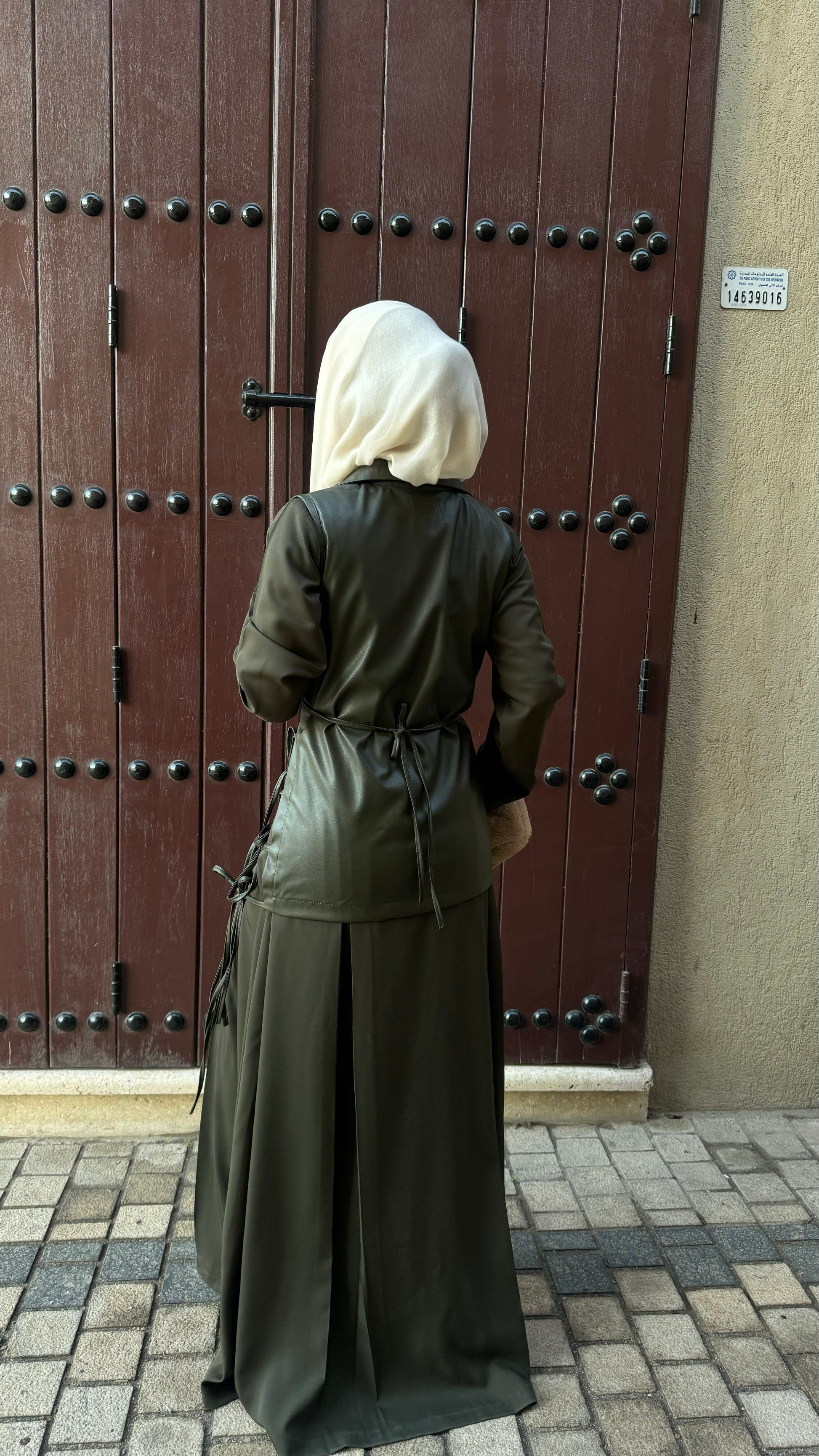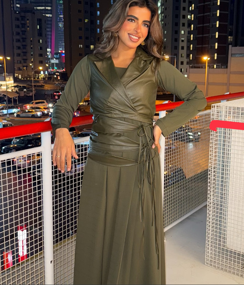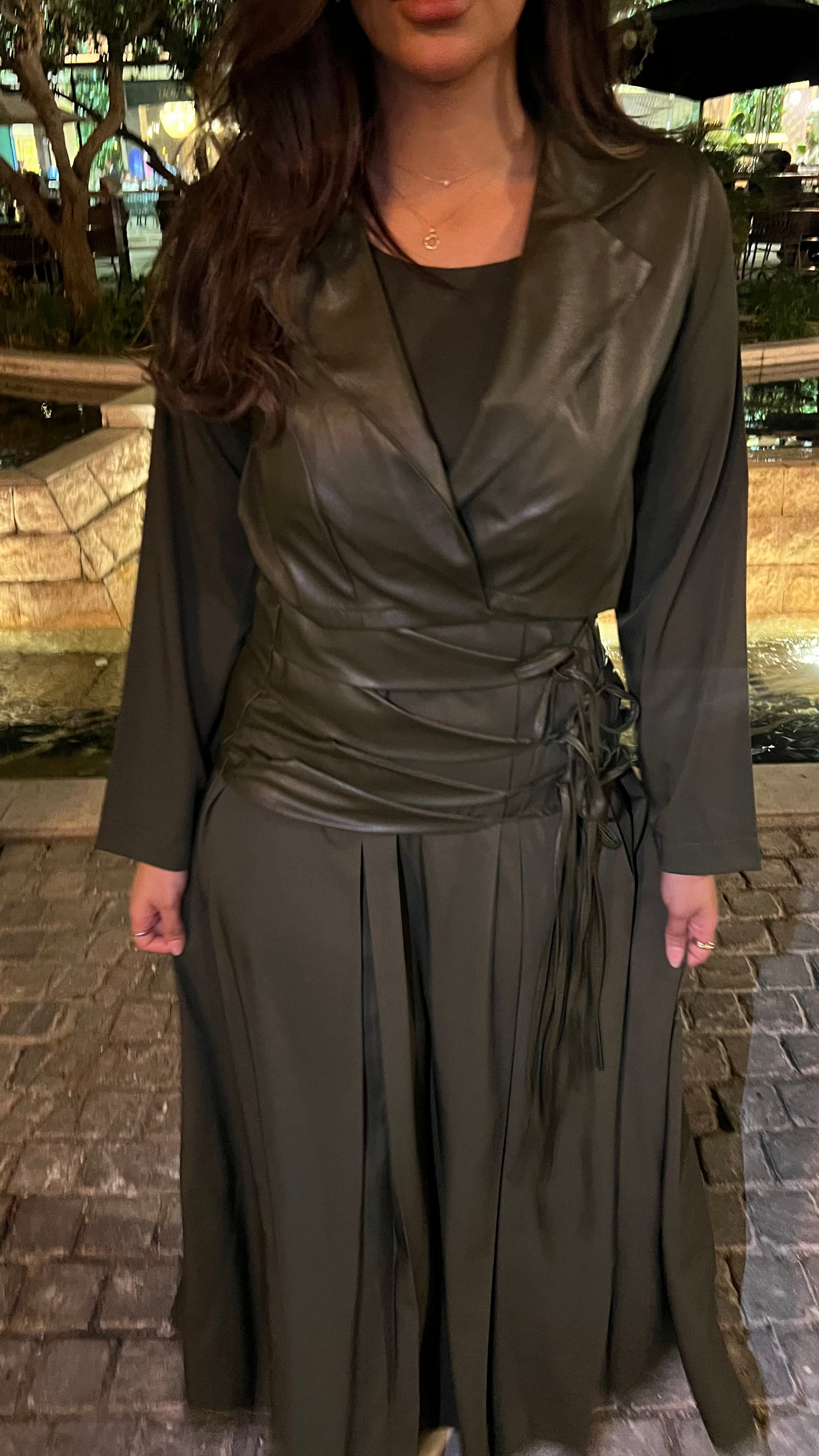 Fazam’s signature design in a lather vest with a matching flowey dress.