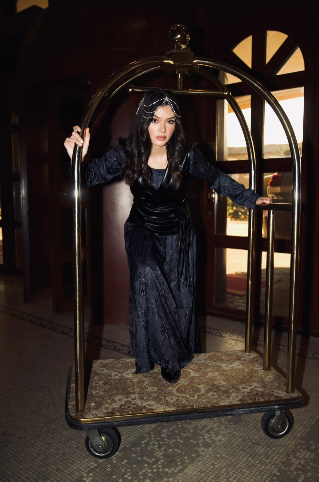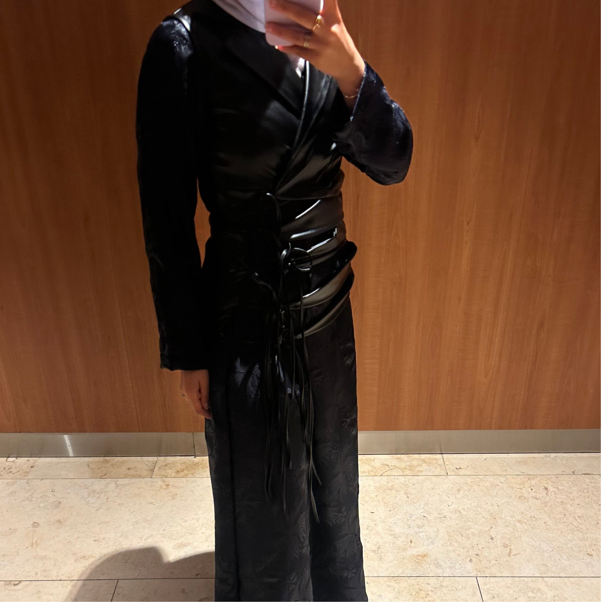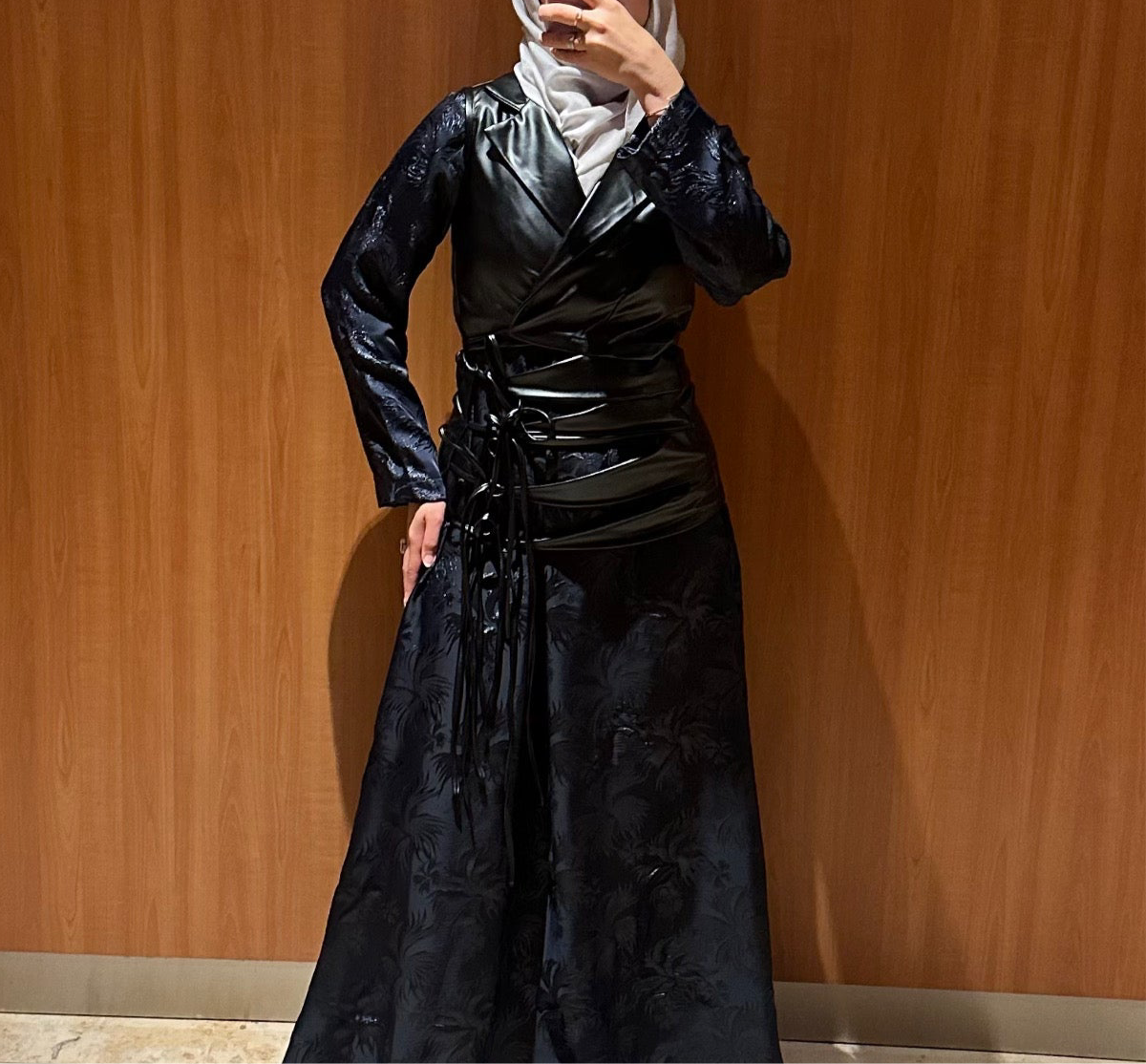 Fazam’s signature design in a lather vest with a matching flowey dress.